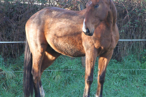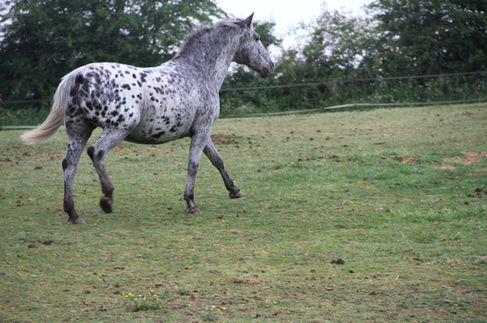 Rusty a été une superbe occasion pour les écuries de Laubelle. Magnifique jument ramenée de l'étranger pour être mise au sport, elle sera gravement accidentée au pré (multiples fractures au genou). Ses anciens propriétaires ont décidé de lui laisser cependant une chance, et elle a guérit seule. Avec un genou surdimensionné, impossible de faire du sport, cependant, elle a pu marcher, trotter et galoper quand elle le souhaitait! Très gros modèle, elle nous l'avons perdu lors d'une mise bas compliquée, durant laquelle nous perdrons et la mère, et la superbe pouliche pie qu'elle nous avait fait.